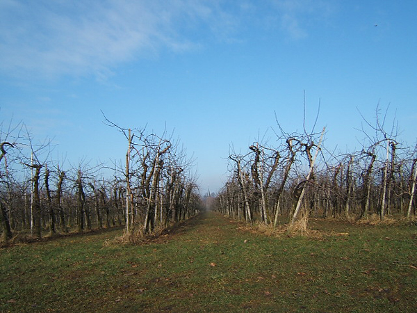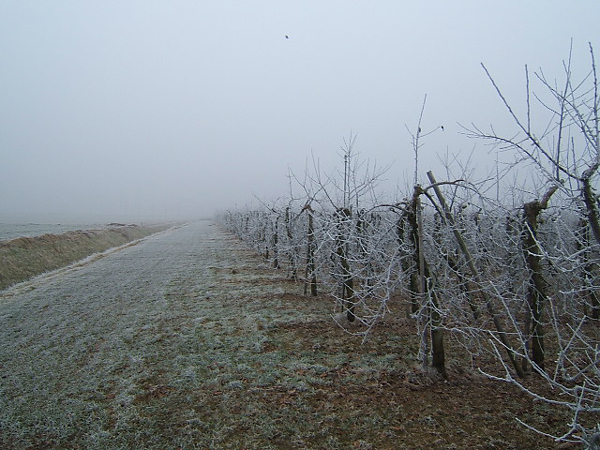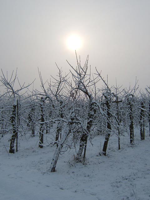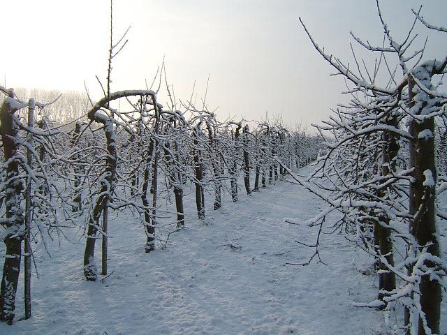 Boomgaard in wintertooi